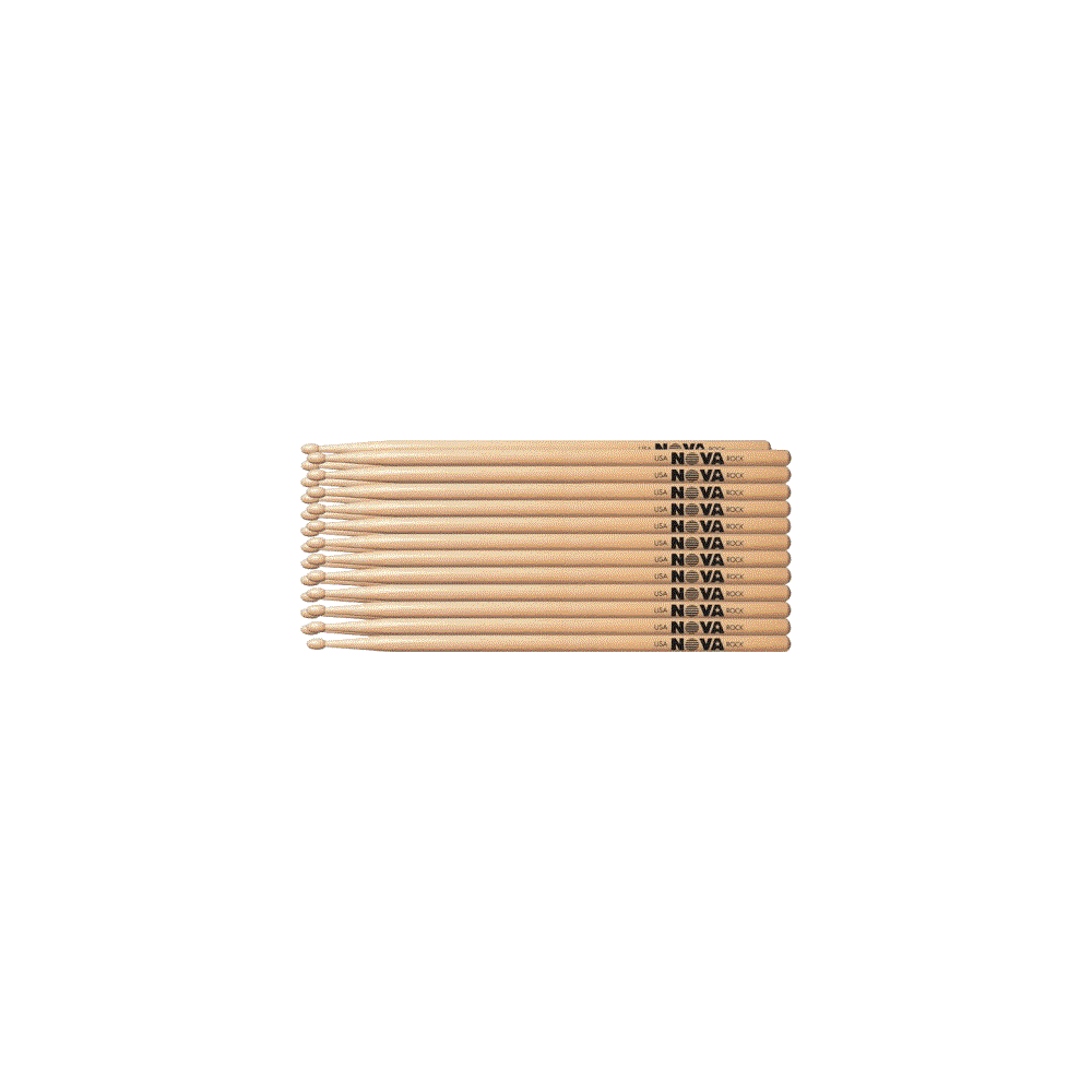 Fabriquées en hickory (bois de noyer américain), elles offrent une excellente résistance et un bon équilibre, garantissant un confort de jeu optimal. La série Nova est connue pour proposer des baguettes issues du même processus que les modèles haut de gamme, avec seulement de légères imperfections esthétiques, tout en restant parfaitement jouables